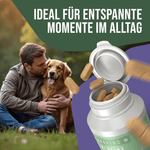 Andere Produkte wirken nur kurzfristig. Mit unserer hochdosierten Premium-Rezeptur bleibt dein Hund den ganzen Tag entspannt und ausgeglichen.