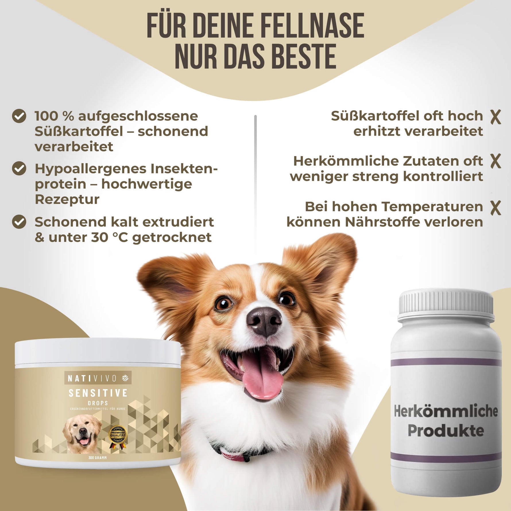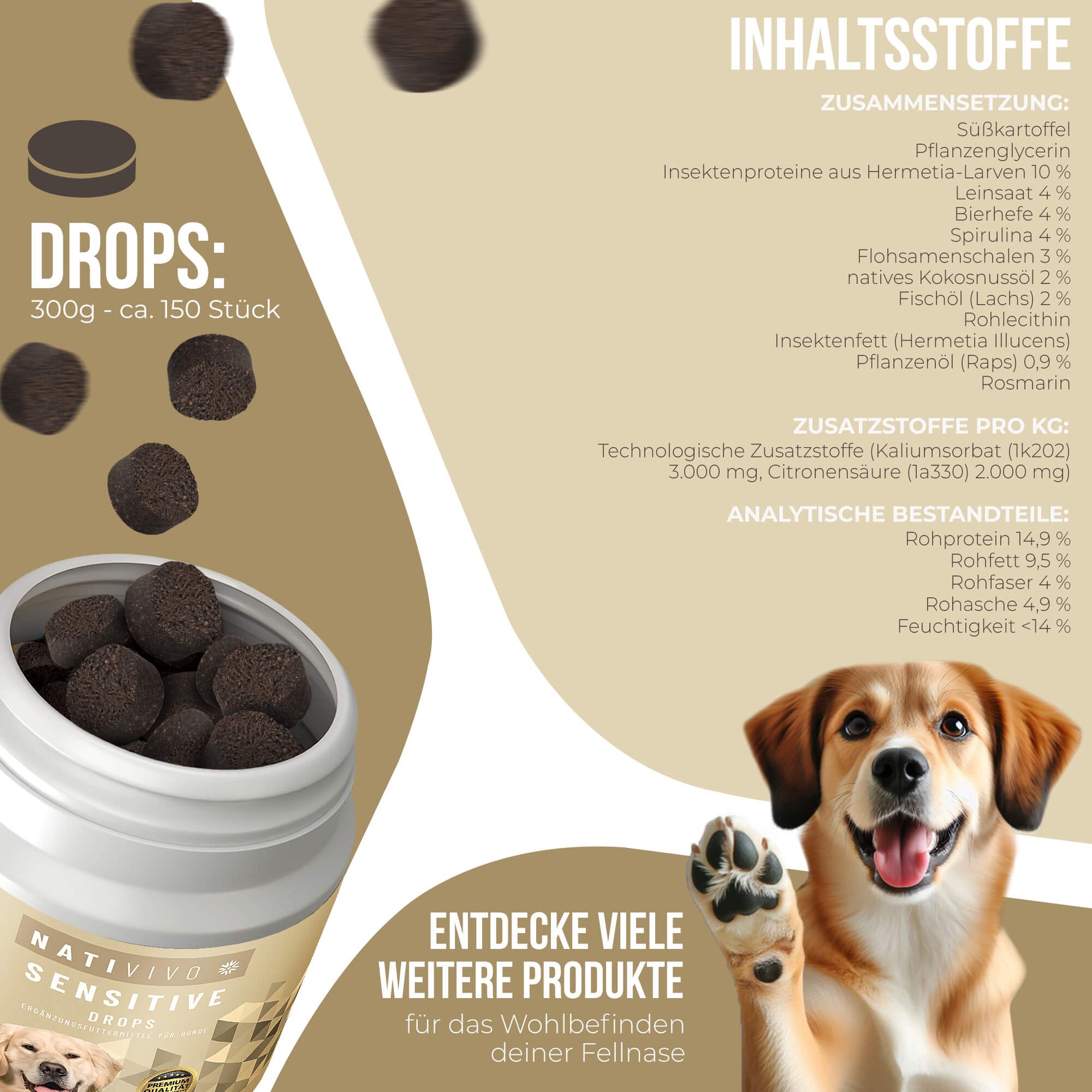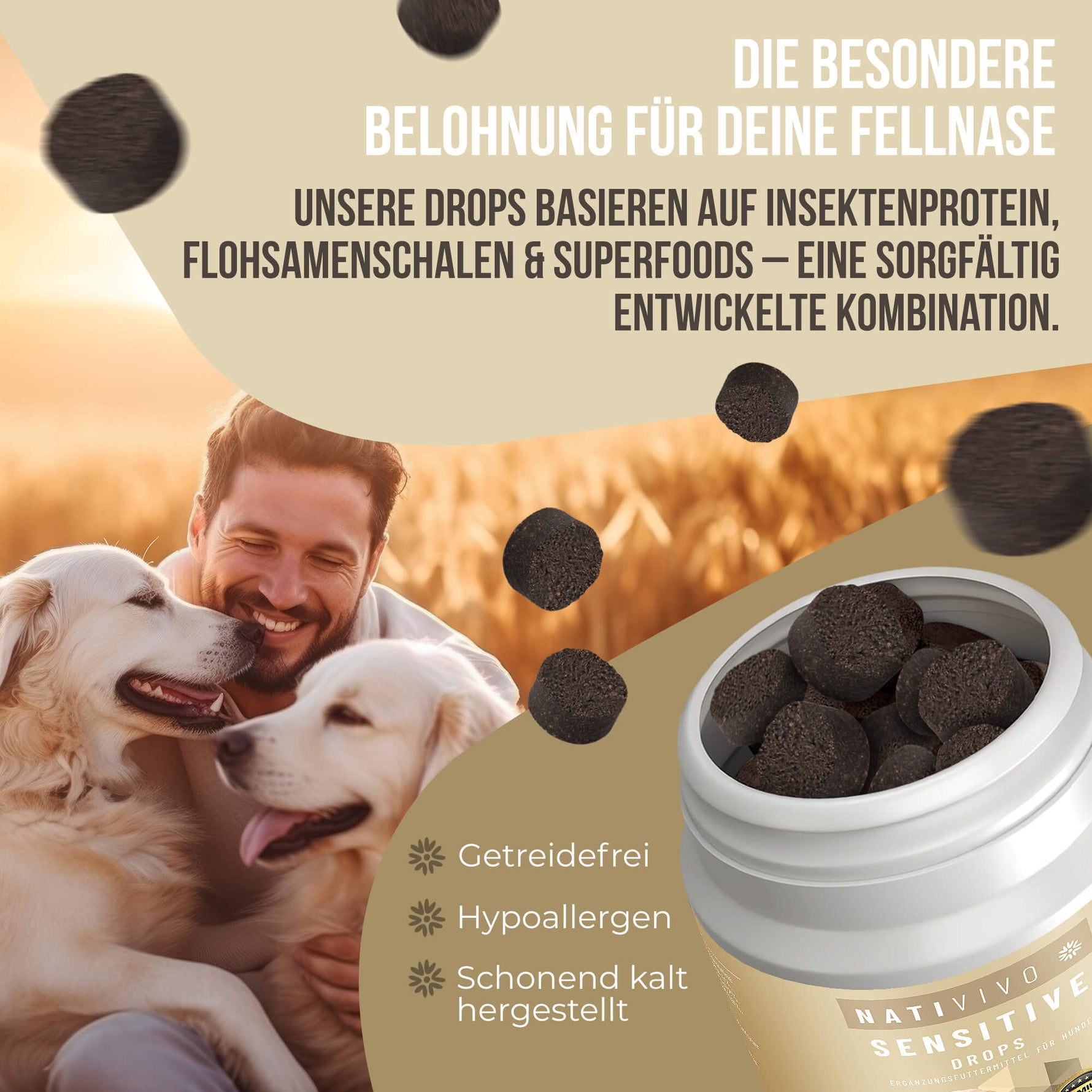 Sensitive Drops Hundeleckerli Hundesnack mit Insektenprotein, Flohsamenschalen & Superfoods – leicht verdaulich