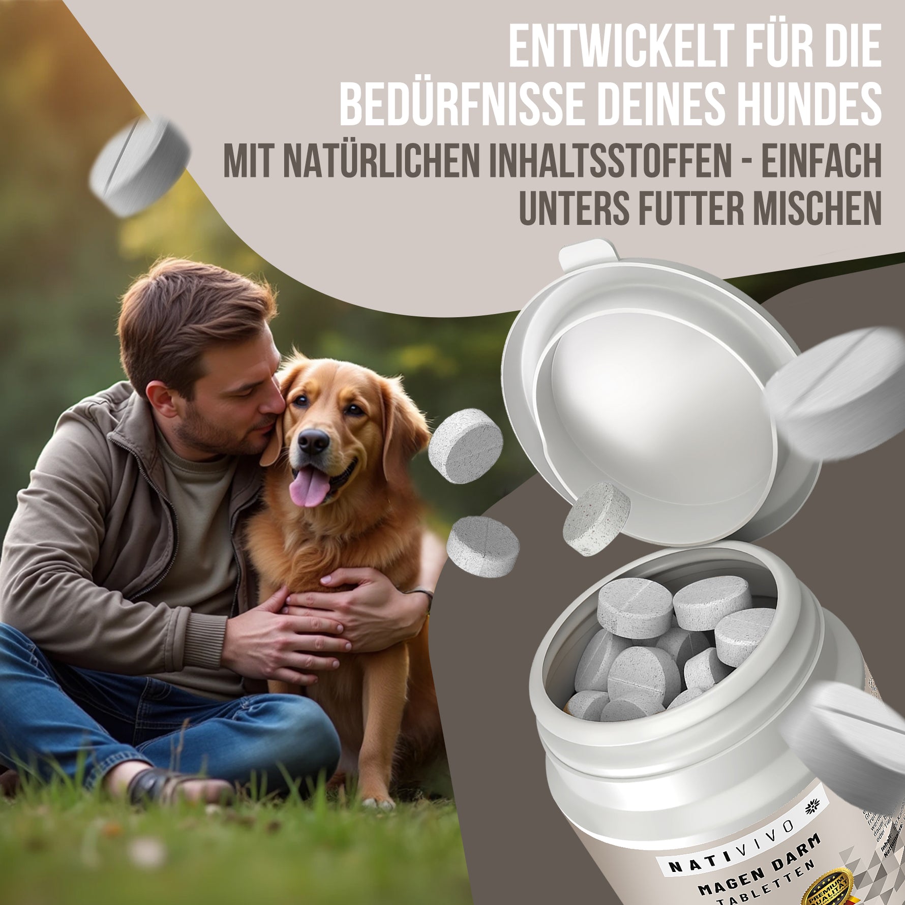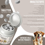 Unsere Magen-Darm Tabs unterstützen auf natürliche Weise die Verdauung & das Wohlbefinden deines Hundes.