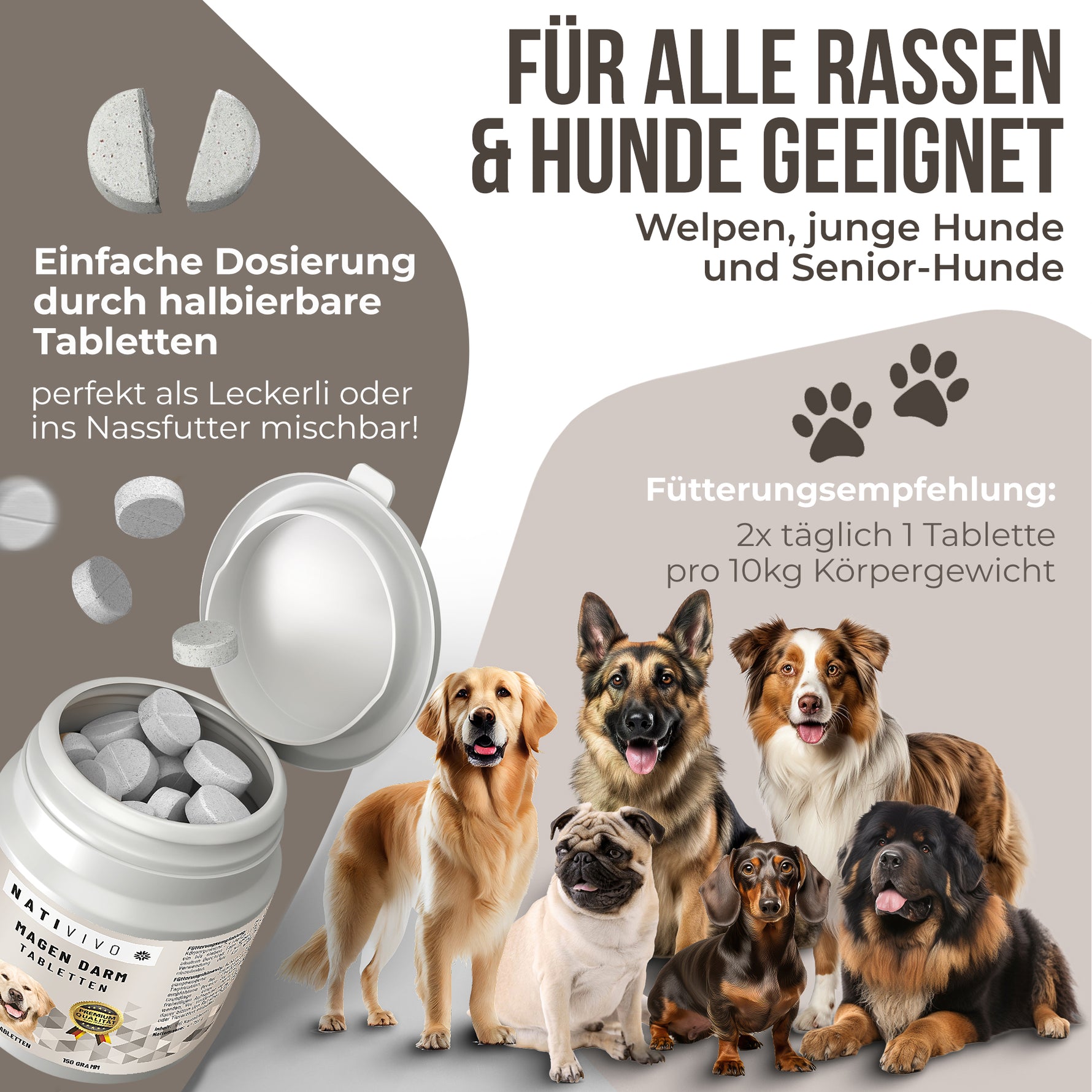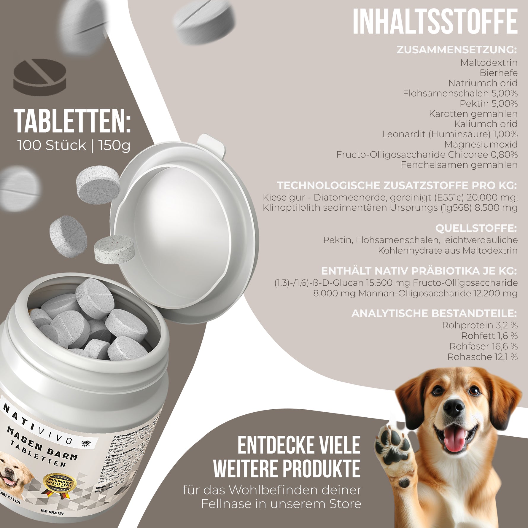 NatiVivo Gras und Kotfresser Drops Alternative Dia Tab für Hunde Probiotika Hund unterstützt bei Gras & Kotfressen, Sodbrennen, Durchfall und Erbrechen – Diatabs für Hunde 100 Tabletten